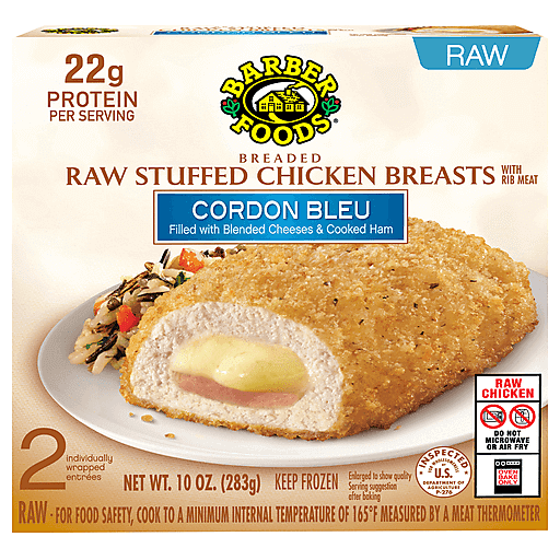 Barber Foods Chicken Breasts, With Rib Meat, Raw, Stuffed, Breaded, Cordon Bleu 2 ea