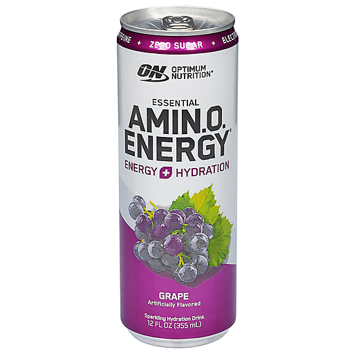 Glanbia Optimum Nutrition Essential Amin.O. Energy Plus Electrolytes Sparkling Hydration Drink , Grape, 12 Count