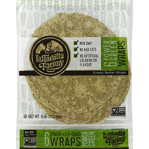 La Tortilla Factory Non-GMO Power Green Wraps 6 ct 8.48 oz package