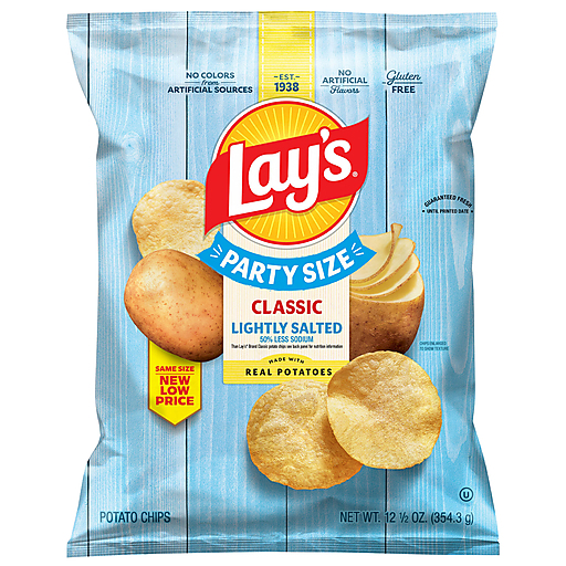 Frito Lay Lay's Party Size Lightly Salted Classic Potato Chips 12.5 oz bag