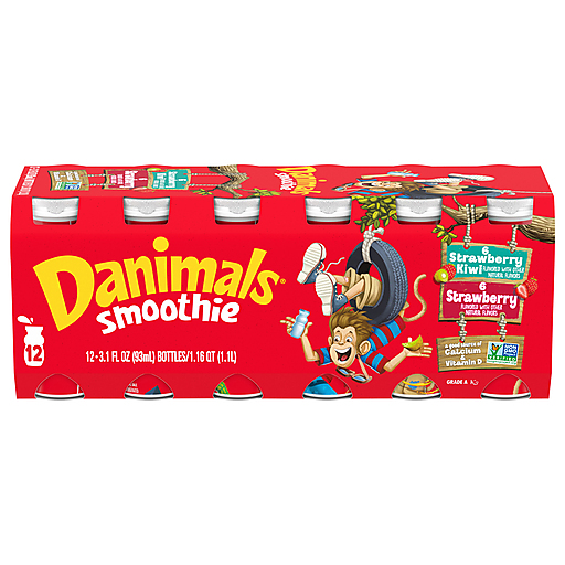 Danimals Strawberry Kiwi & Strawberry Kids Low Fat Yogurt Smoothies 12 ea