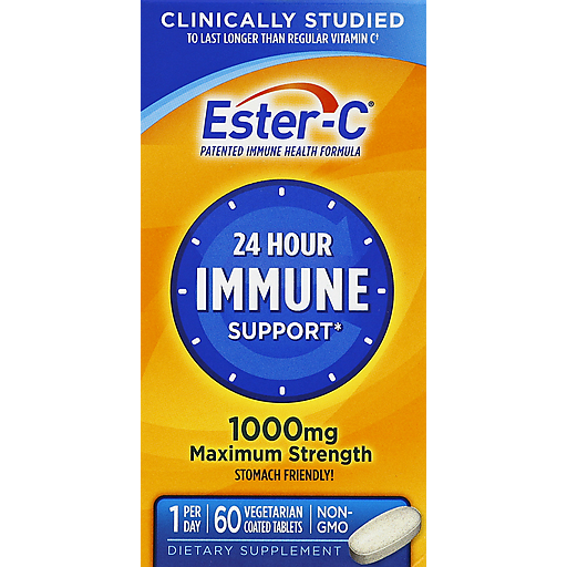 Ester C Immune Support, 24 Hour, Maximum Strength, 1000 Mg, Vegetarian Coated Tablets 60 ea