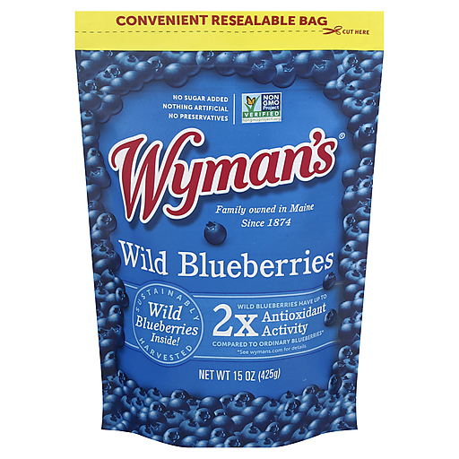 Wymans of Maine No Sugar Added Non-GMO Wild Blueberries Fresh Frozen Fruits 15 oz bag