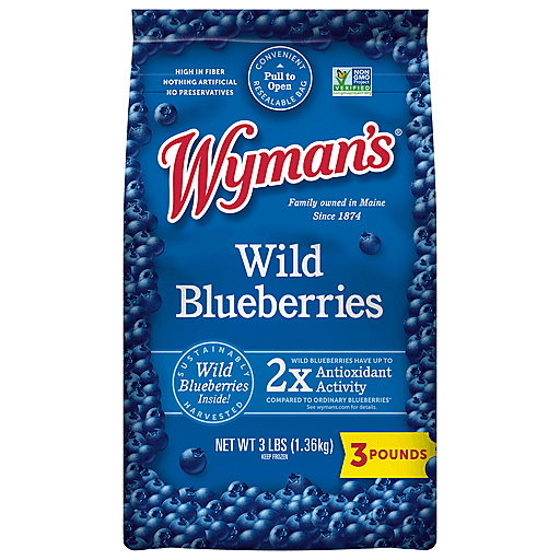 Wymans of Maine No Sugar Added Non-GMO Wild Blueberries Fresh Frozen Fruits 48 oz bag