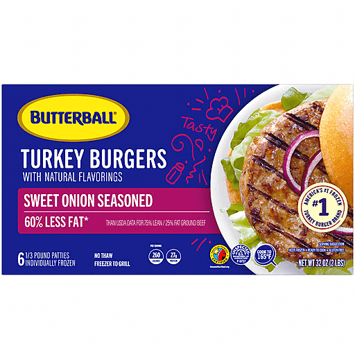 Butterball Sweet Onion Seasoned Turkey Burgers 32 oz box
