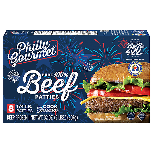 Philly Gourmet 100 % Pure Beef 8 Quarter Pound Beef Patties 8 ct box