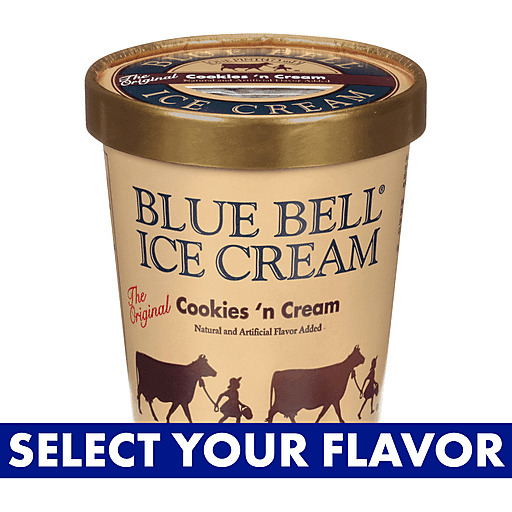 Blue Bell Gold Rim Pint Cookies and Cream Ice Cream 16 oz tub