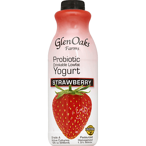 Glen Oaks Yogurt, Drinkable, Lowfat, Strawberry 32 oz