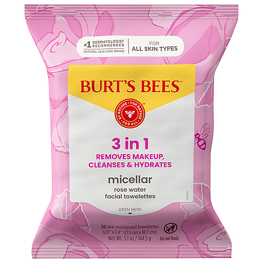 Burt's Bees Micellar Makeup Removing Rose Water Towelettes 30 ct bag