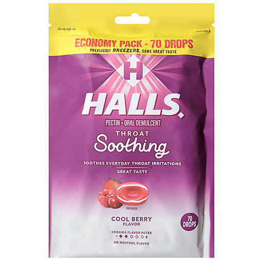 Halls Cool Berry Flavor Throat Soothing Economy Pack 70 ea