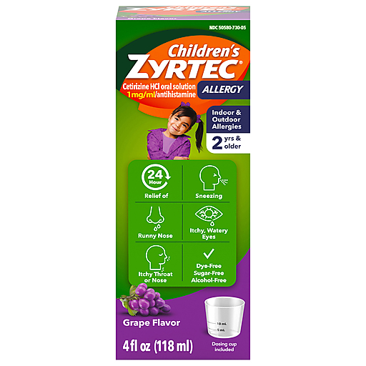 Zyrtec Children's Dye & Sugar Free Allergy Relief Grape Syrup Cetrizine HCI 1 mg 4 fl oz