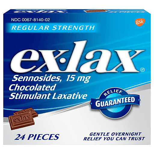 Ex-Lax Regular Strength Chocolate Stimulant Laxative 15 mg Sennosides 24 ct