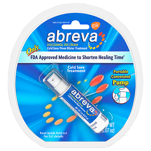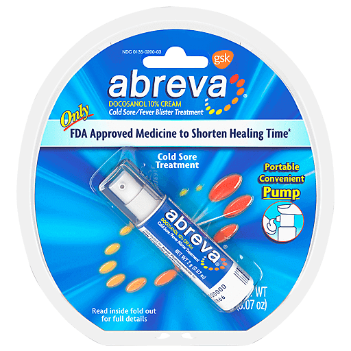 Abreva Cold Sore Treatment Fever Blister Cream Pump 0.07 oz package