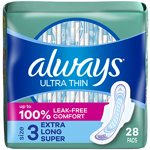 Always Ultra Thin Extra Long Super Pads 28 ct package