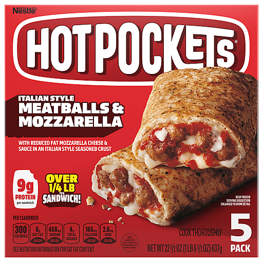 Hot Pockets Sandwiches, Meatballs & Mozzarella, Italian Style Seasoned Crust, 5 Pack 5 ea