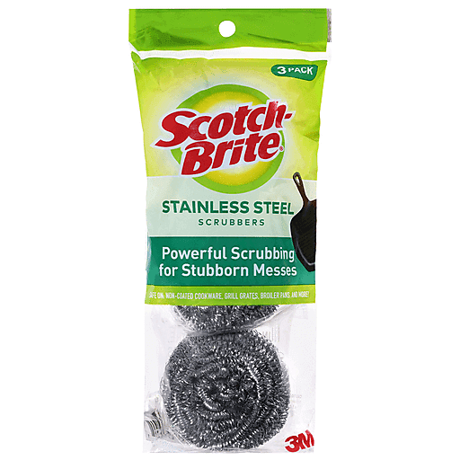 3M Scotch-Brite Stainless Steel Scrubbers 3 ct package