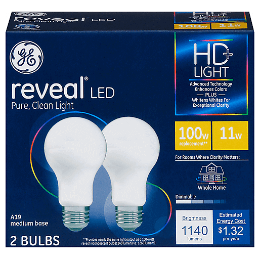 GE Reveal 11 Watts HD+ LED Light Bulbs 2 ea