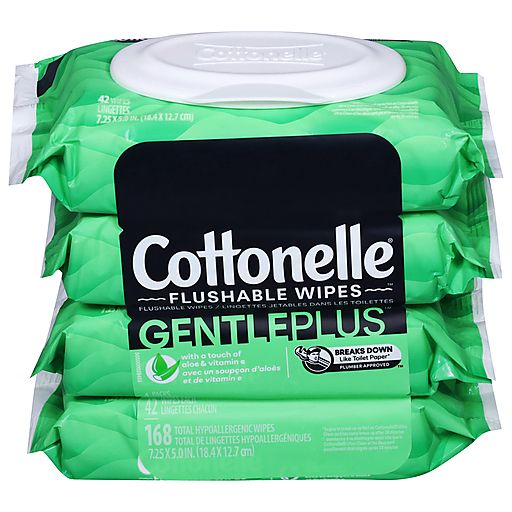 Cottonelle Gentleplus Flushable Wet Wipes With Aloe & Vitamin E - 4 Flip-Top Packs 168 Ct