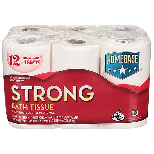 HomeBase Two-Ply Mega Rolls Strong Bath Tissue 12 ct