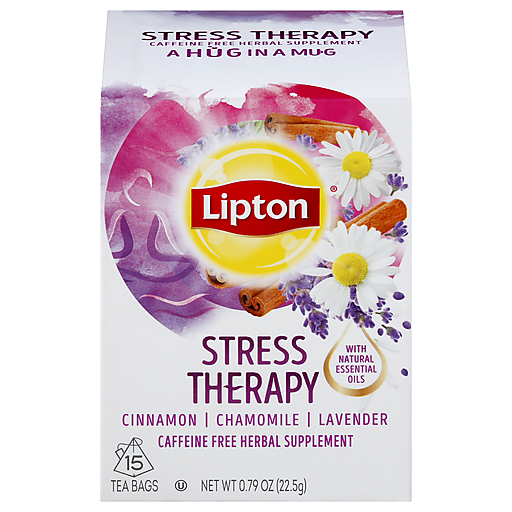 Lipton Tea, Stress Therapy, Cinnamon, Chamomile, Lavender, Caffeine Free, Bags 15 ea