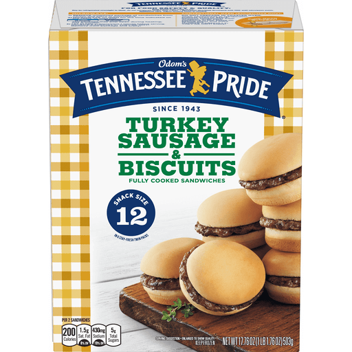 ODOM'S TENNESSEE PRIDE Turkey Sausage Biscuits, Snack-Size Frozen Breakfast Sandwiches, 12 Count