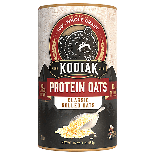 Kodiak Cakes Classic Rolled 100% Whole Grain Protein Oats 16 oz tub