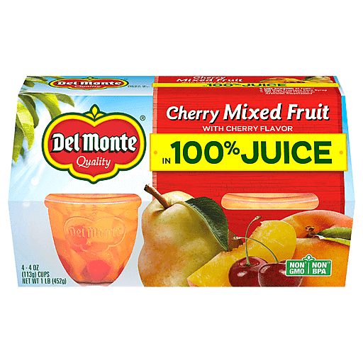 Del Monte Cherry Mixed Fruit in Light Syrup Cup Snacks 4 oz pot 4 ct