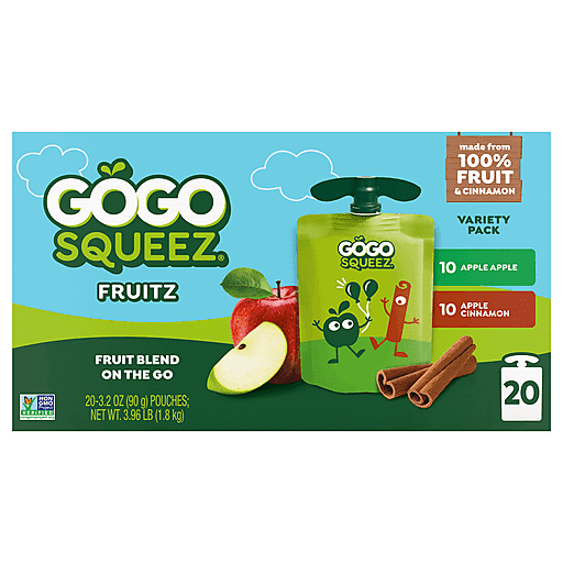 Materne GoGo Squeez Non-GMO Variety Pack Apple and Cinnamon Applesauce 3.2 oz pouch 20 pack