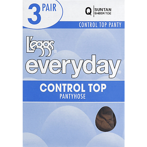 L'eggs Pantyhose, Control Top, Sheer Toe, Size Q, Suntan 3 ea