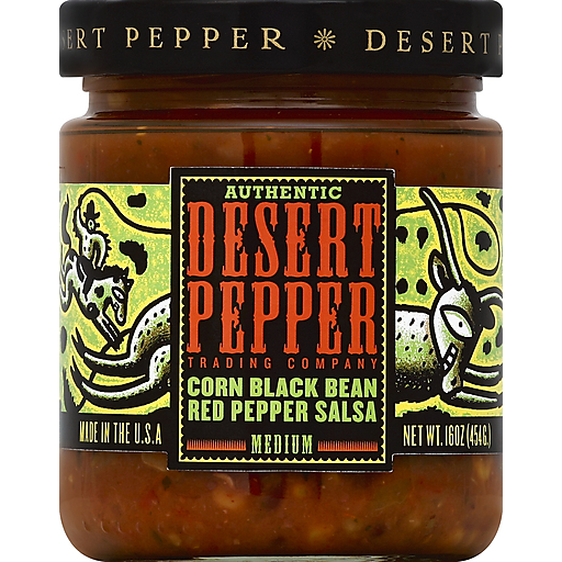 Desert Pepper Corn Black Bean Red Pepper Salsa Medium Hot Dip 16 oz jar