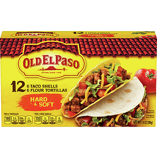 Old El Paso Hard & Soft Taco Shells x 6 Flour Tortillas x 6 7.4 oz box