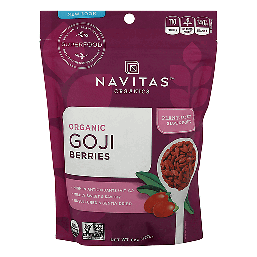 Navitas Organic Non-GMO Plant Based Superfood Goji Berries Dried Fruit Snack 8 oz bag
