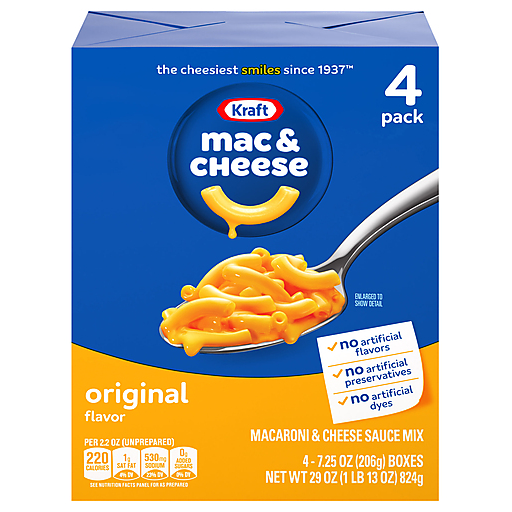 Kraft Original Flavor Macaroni & Cheese Dinner Pasta 7.25 oz box 4 ct