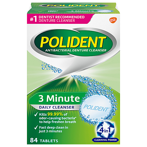 Polident Denture Cleanser, Antibacterial, 3 Minute, 4 In 1, Tablets 84 ea