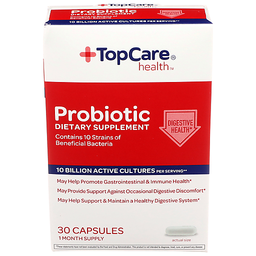 10-STRAIN PROBIOTIC INFORMATION - PROBIOTIC BLEND: LACTOBACILLUS ACIDOPHILUS, BIFIDOBACTERIUM LACTIS, BIFIDOBACTERIUM INFANTIS, BIFIDOBACTERIUM BREVE, LACTOBACILLUS RHAMNOSUS, LACTOBACILLUS PARACASEI, LACTOBACILLUS PLANTARUM, BIFIDOBACTERIUM ADOLESCENTIS, BIFIDOBACTERIUM BIFIDUM, BIFIDOBACTERIUM LONGUM. TOPCARE PROBIOTIC 10-STRAIN - 58 MG. TOTAL ACTIVE CULTURES WHEN MANUFACTURED, TOPCARE PROBIOTIC 10-STRAIN - 10 BILLION**, DOSAGE FORM - VEGETARIAN CAPSULE