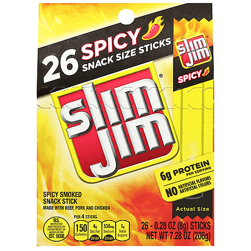 Slim Jim Snack Sticks, Smoked, Spicy, Snack Size 26 ea