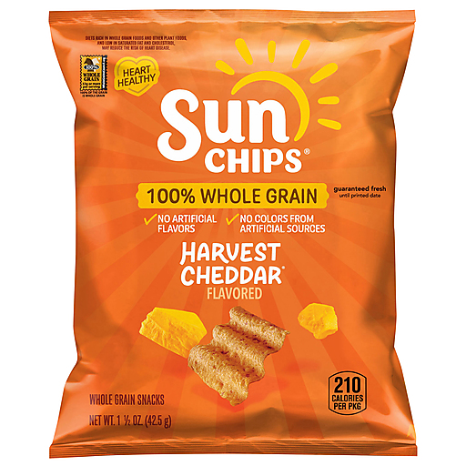 Sun Chips 100% Whole Grain Harvest Cheddar Flavored Snacks 1.5 oz