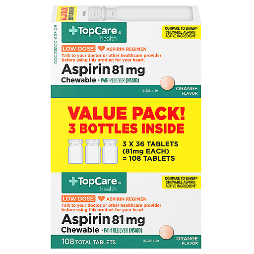 Top Care Tablets Orange Flavor 81 Mg Aspirin Value Pack 3 ea